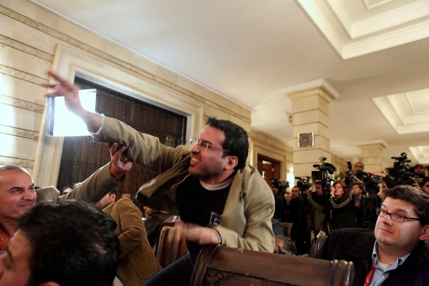 Algo similar sucedió en una conferencia de prensa el 14 de diciembre de 2008 en Irak, en donde el periodista iraquí Muntadhar al-Zaidi arrojó sus zapatos al presidente de los Estados Unidos, George W. Bush. Si bien para los americanos arrojar algún objeto a alguien es sinónimo de abucheo, para la cultura iraquí mostrar la suela del zapato es considerado un gran insulto en medio oriente y arrojar un zapato es visto como aún peor, una gran amenaza.